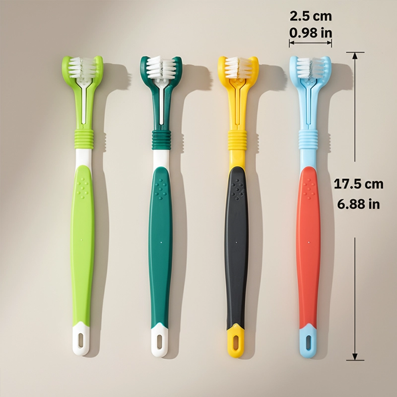 Tři strany mi umožňují vyčistit všechny zuby najednou. Veterinář byl při poslední návštěvě překvapený čistými zuby mého psa.