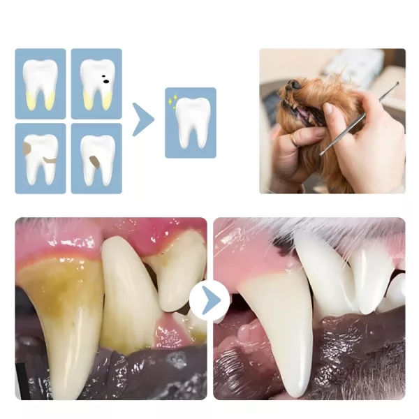 Náš set obsahuje tři nástroje, které zajišťují komplexní péči o ústní dutinu. Škrabka a škálovač efektivně čistí zuby vašeho psa a odstraňují zubní kámen i další usazeniny. Sonda ve tvaru srpu pomáhá odhalit první příznaky onemocnění dásní a zubního kazu. Je to jako mít profesionální sadu na čištění zubů pro vašeho mazlíčka doma.