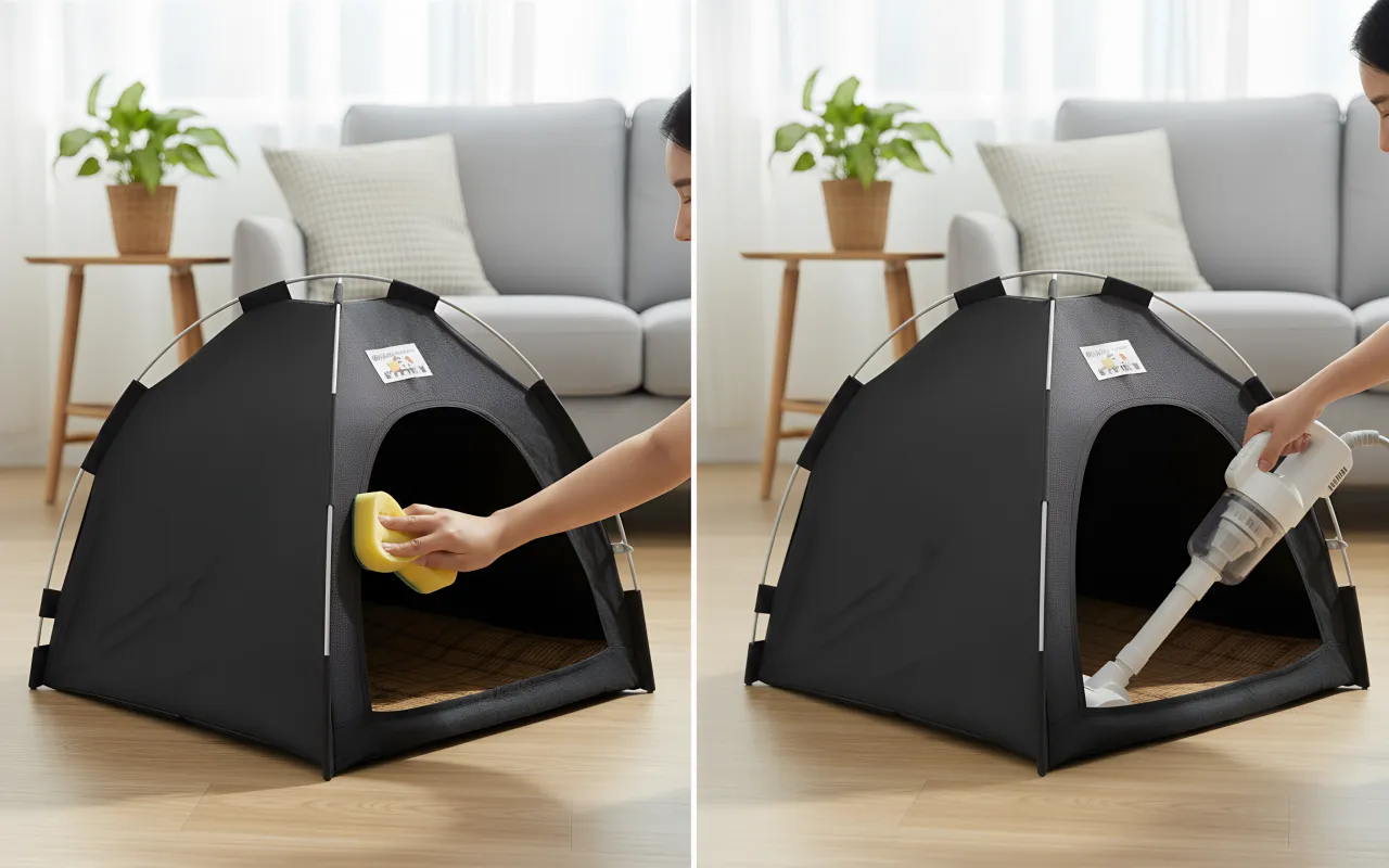 Tato malá chýška pro kočky se stala oblíbeným útočištěm mé kočky. Čištění vnitřku je jednoduché, protože vše se rychle vyndá. Navíc je roztomilá.