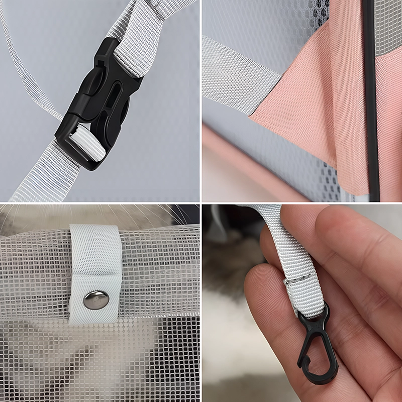 Čerstvý vzduch volně proudí skrz síťované panely na všech stranách. Mazlíčci zůstávají uvolnění a v pohodě během procházek nebo výletů venku.