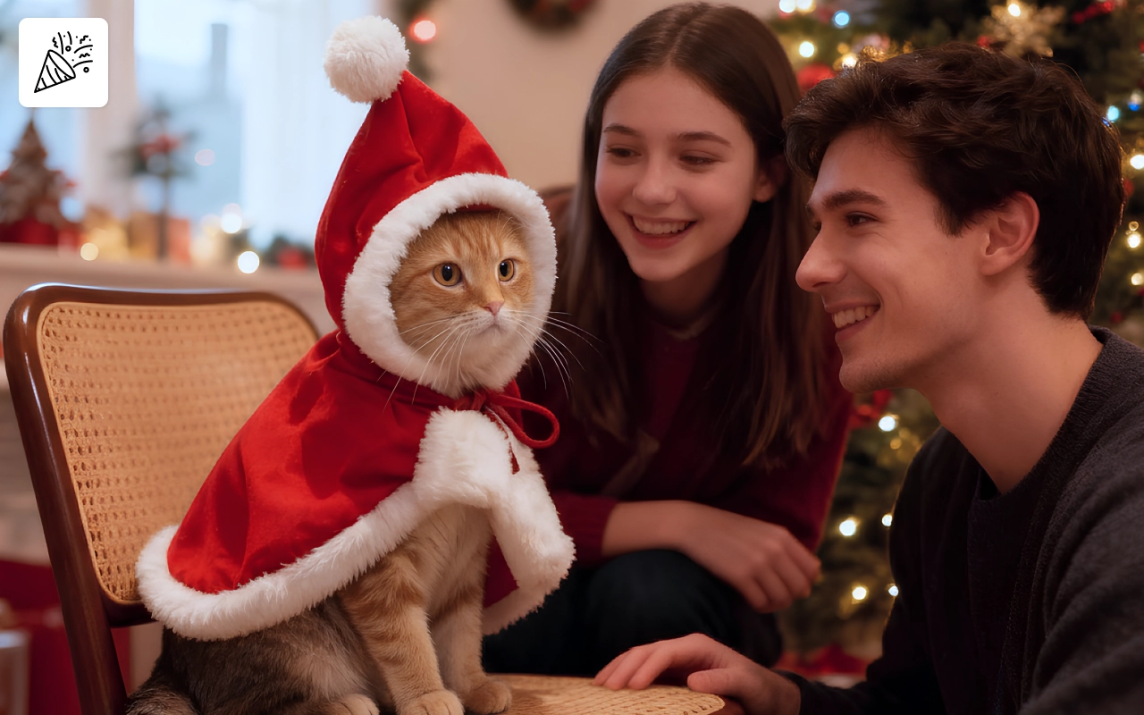 Vánoční kostým pro kočku s kapucí Santa Claus