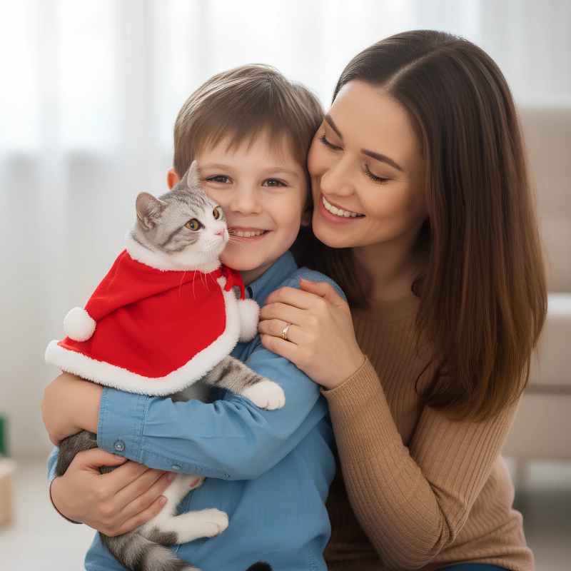 Každý člen rodiny chtěl selfie s naší kočičkou v pláštíku. Žádné svědění, jen šťastná kočka! Uchovali jsme všechny fotky na příští sezónu.