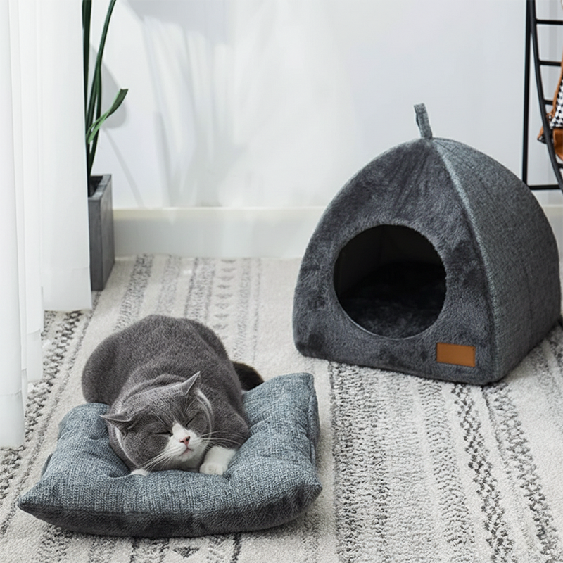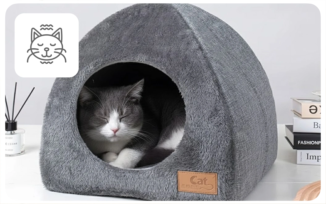 Trojúhelníkový tvar poskytuje soukromí a rychle snižuje stres i úzkost. Kočky se uvnitř cítí chráněné a užívají si tiché chvíle vždy, když potřebují.
