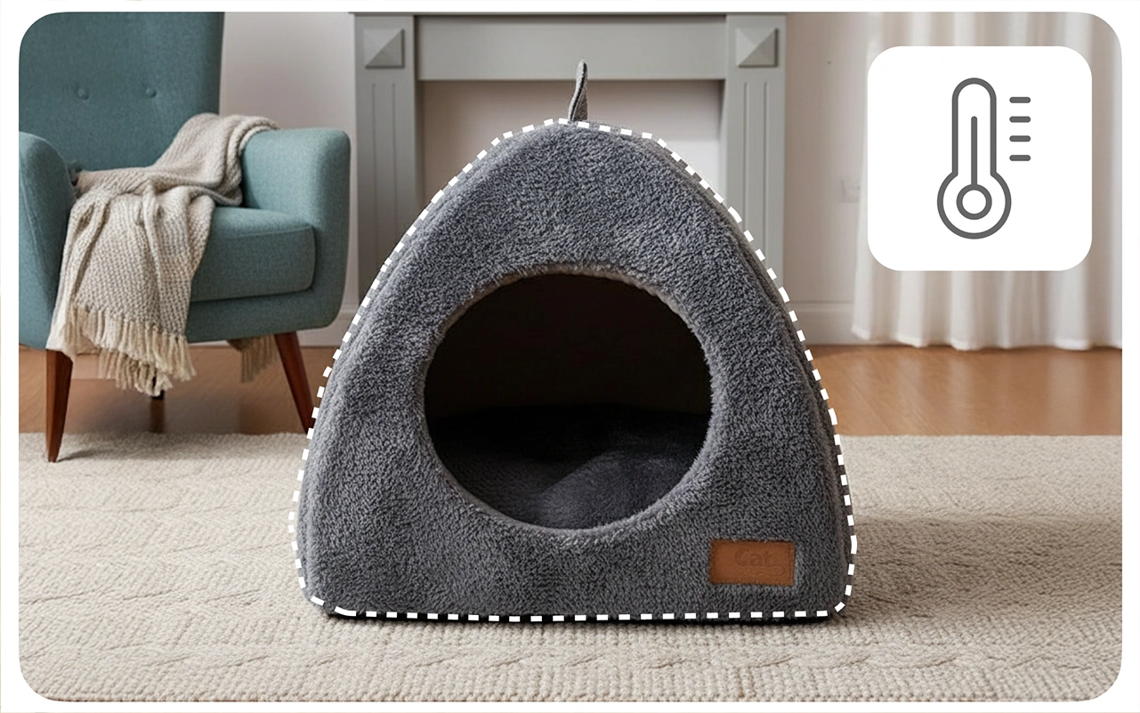 Silná izolace udržuje chladný vzduch venku a pomáhá mazlíčkům zůstat v teple uvnitř. Hebká podšívka jemně obepíná tělo a poskytuje klidné a pohodlné místo k odpočinku.