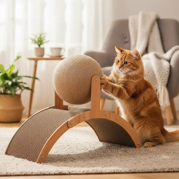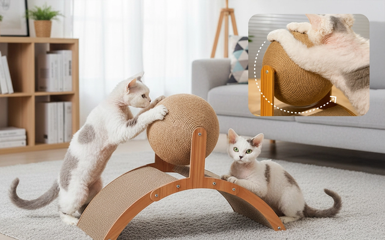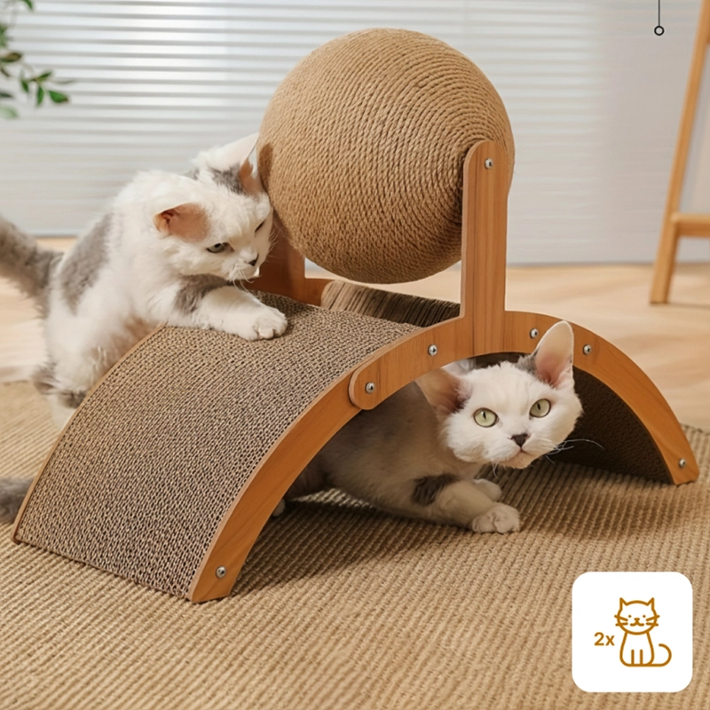 Zakřivený most a rotující míček přinášejí nekonečnou zábavu. Kočky zkoumají, škrábou a relaxují při každém použití.
