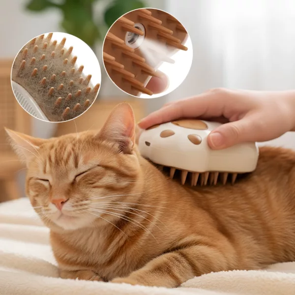 30 recenzí Masážní parní kartáč pro kočky – elektrický hřeben s měkkými štětinami a sprejem