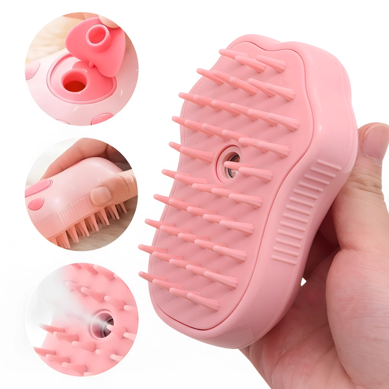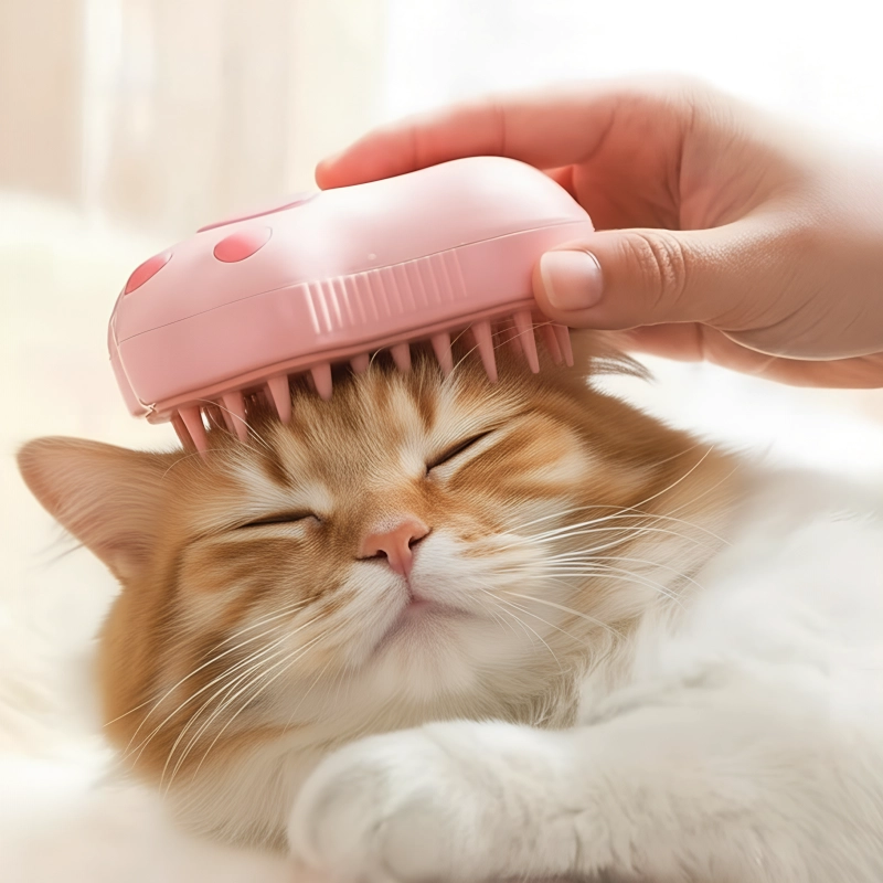 Masážní parní kartáč pro kočky – elektrický hřeben s měkkými štětinami a sprejem