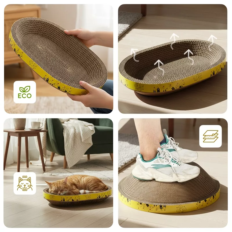 Pevný povrch umožňuje kočkám bezpečně škrábat, což pomáhá udržovat zdravé drápky. Rozlučte se s poničenými závěsy, postelemi a polštáři.