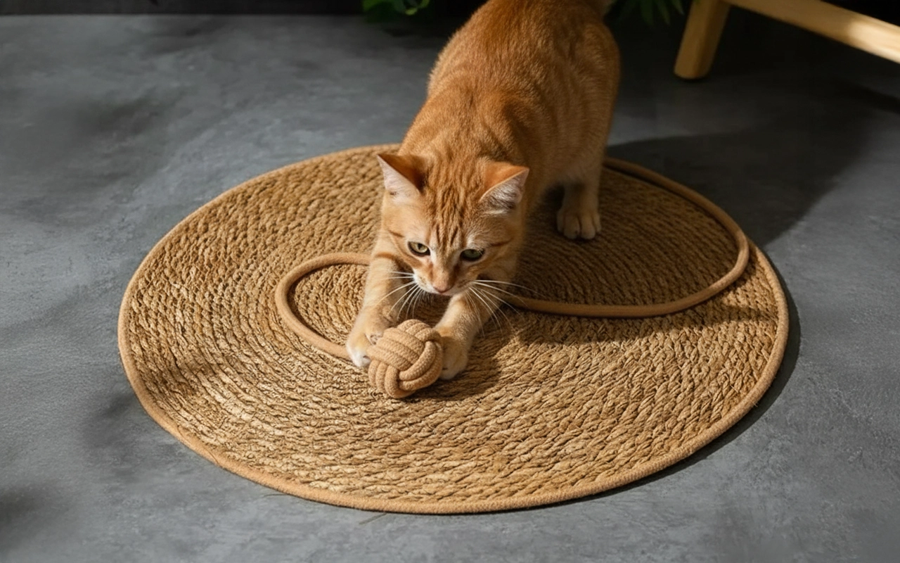 Škrabací podložka pro kočky z sisalu s míčkem – ochrana nábytku na podlahu
