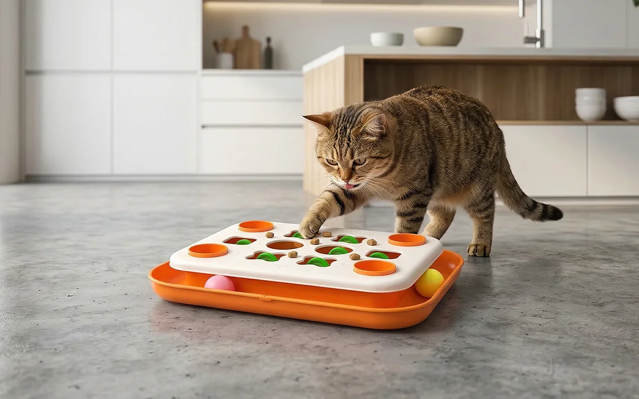 Interaktivní hlavolam pro kočky – zpomalovací miska na pamlsky