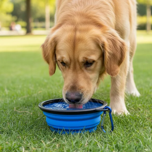 Skládací cestovní miska pro psa s karabinou