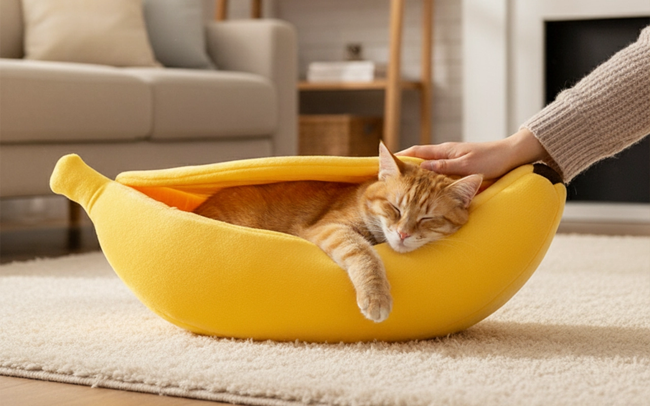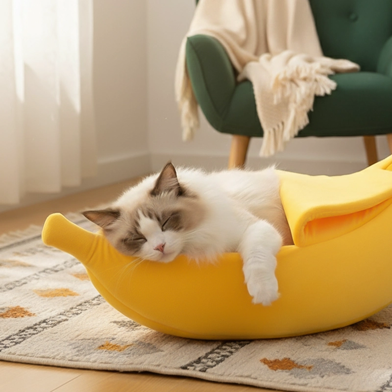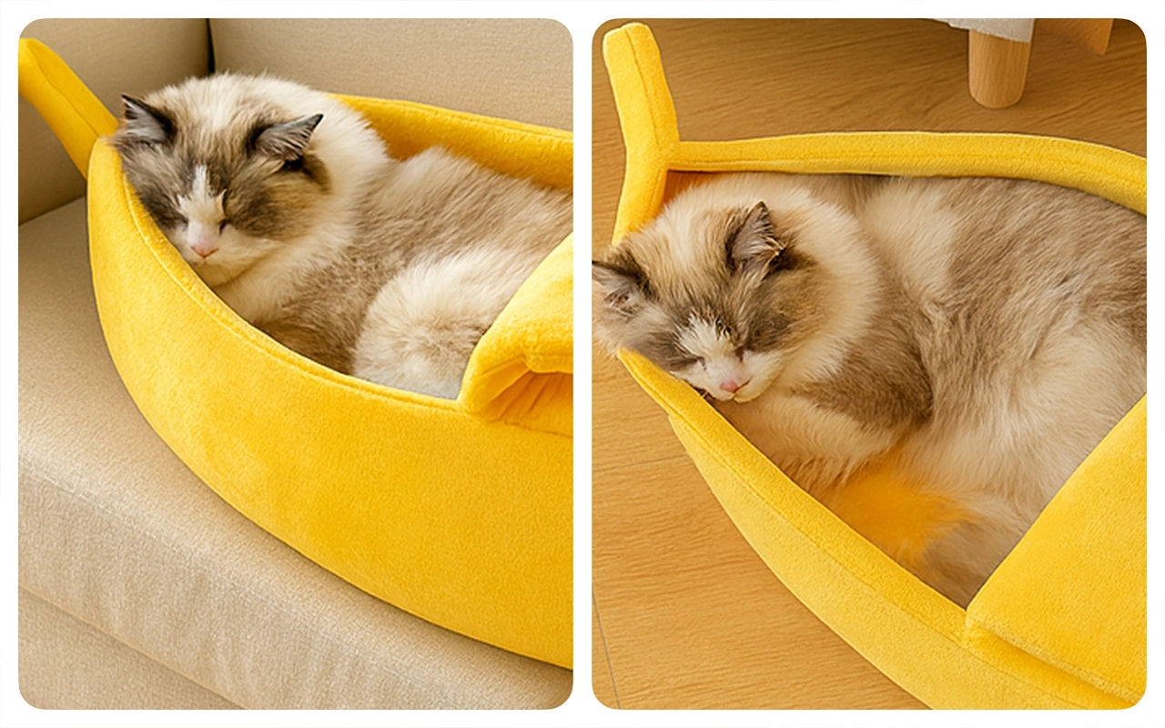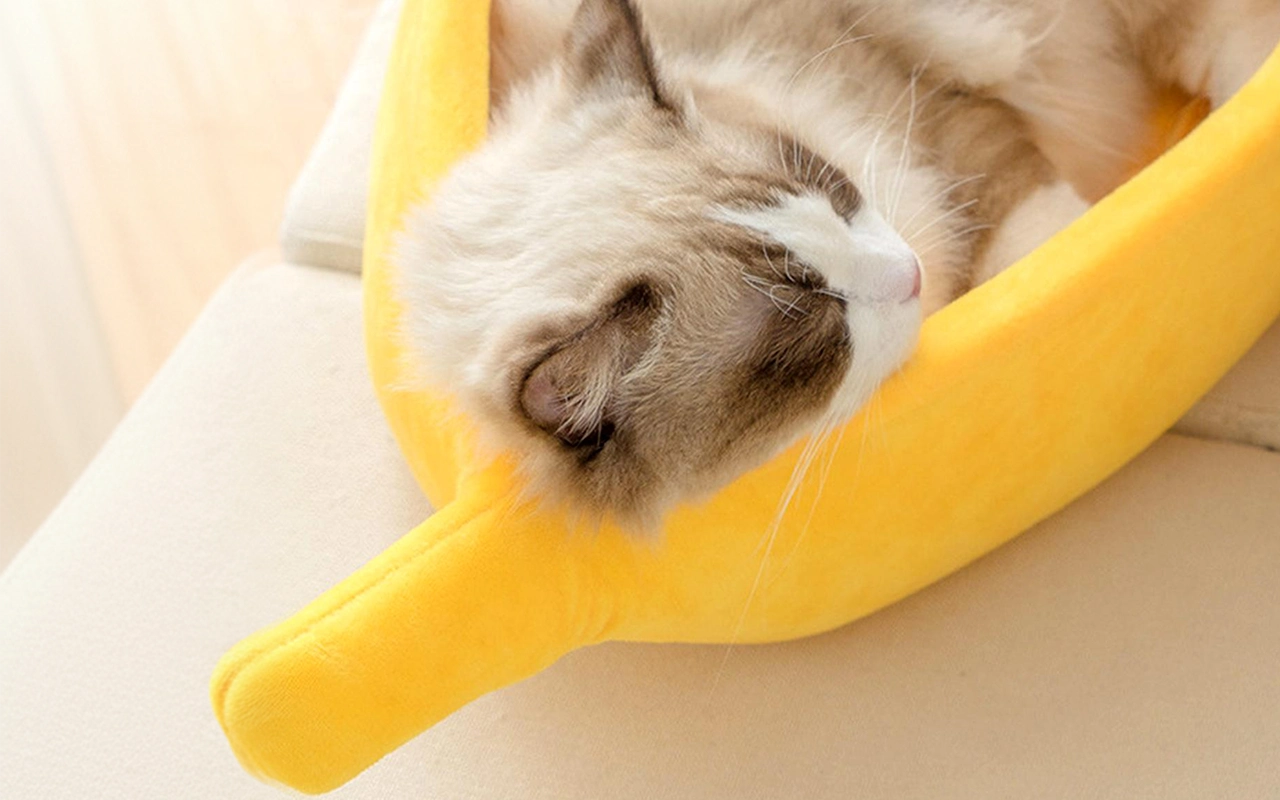 Roztomilý pelíšek banán pro kočky – útulné hnízdo pro mazlíčky
