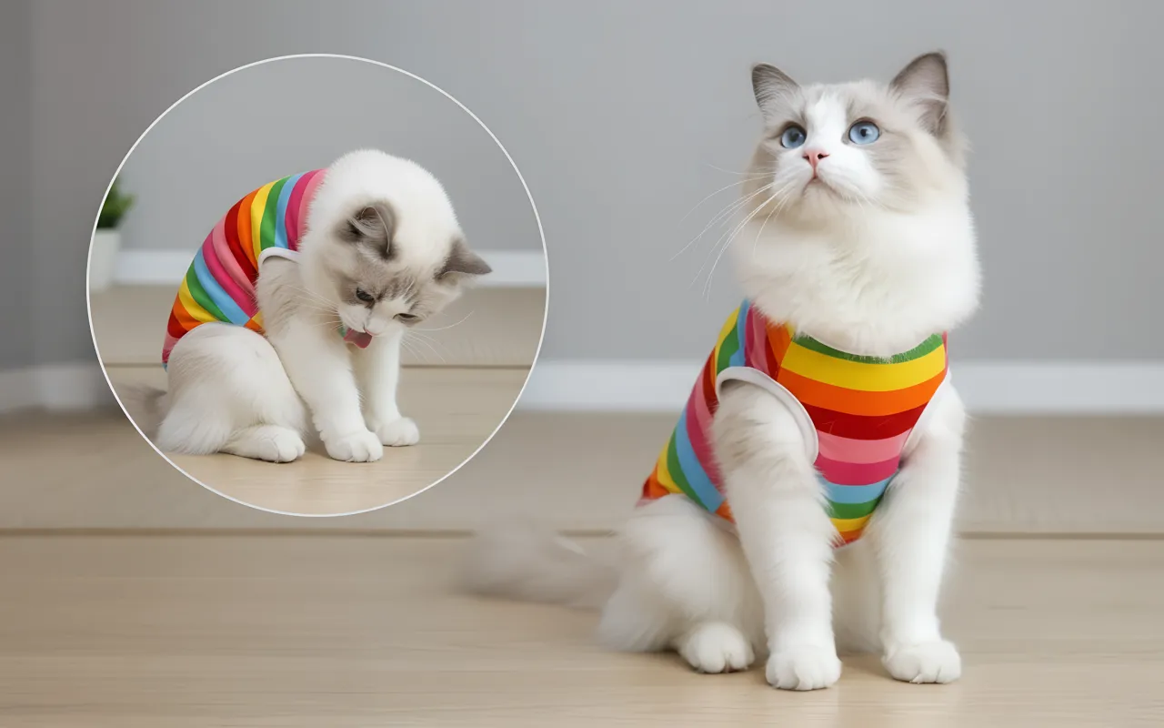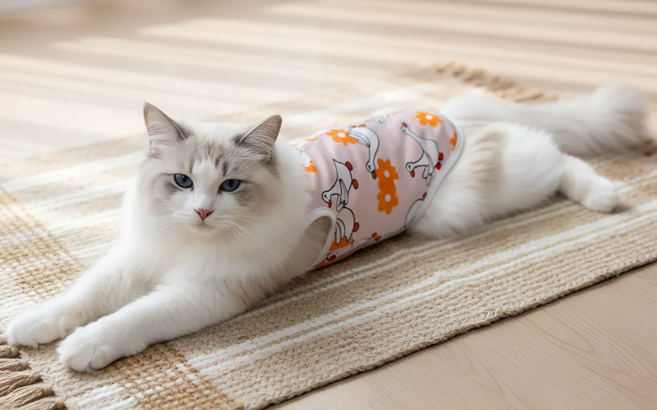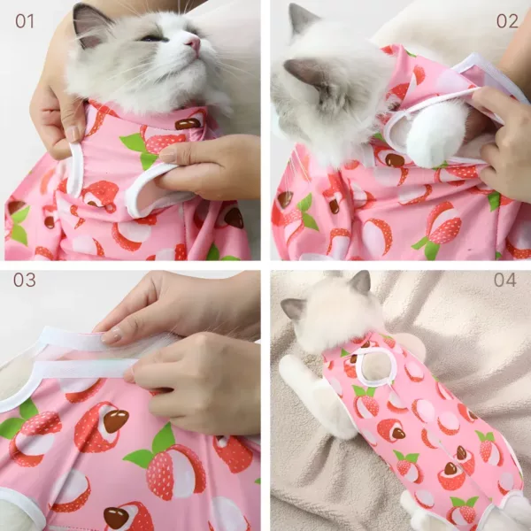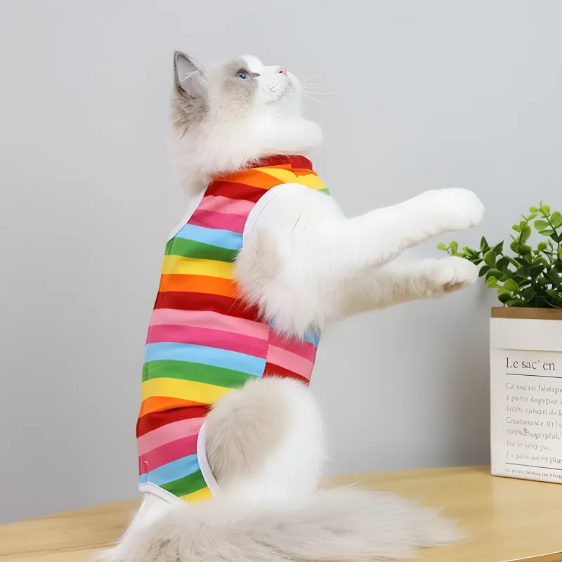 Roztomilý ochranný obleček pro kočky po sterilizaci