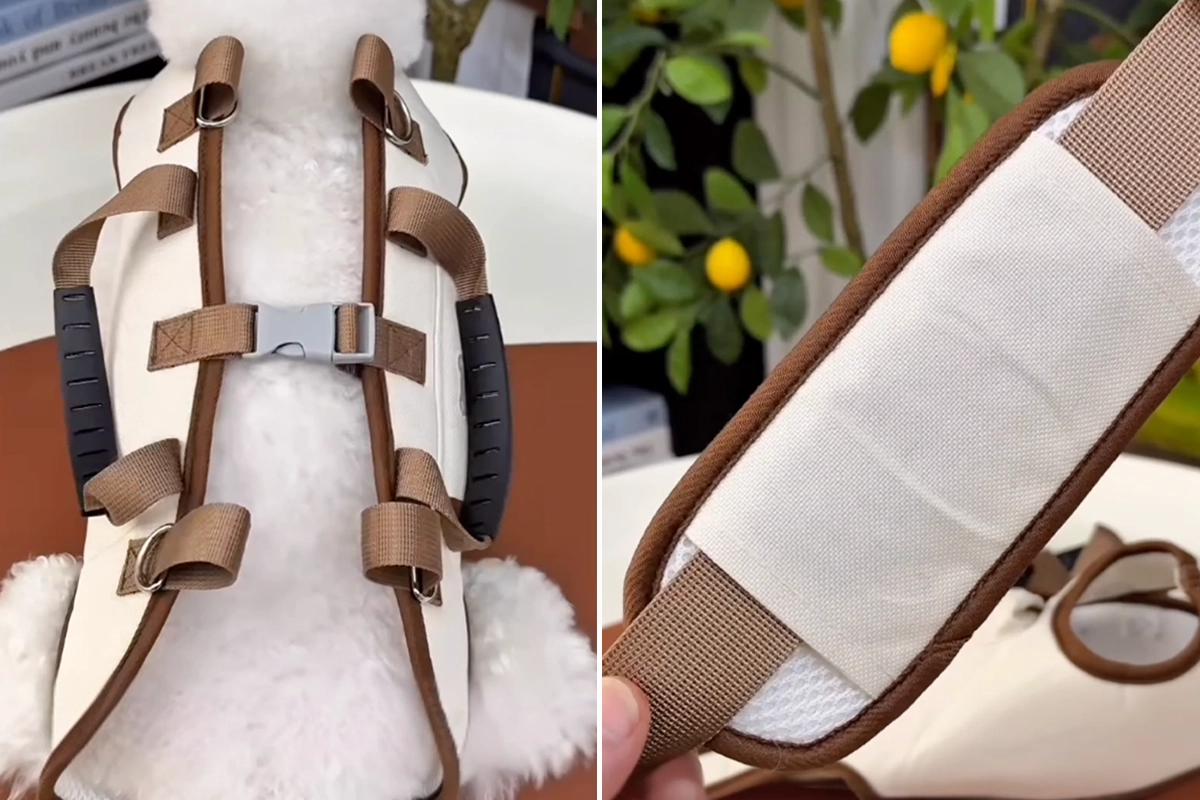 Můj pes se ihned uklidní, když ji vložím do postroje. Je tam dostatek měkkého polstrování, takže je při každé společné cestě v pohodlí.
