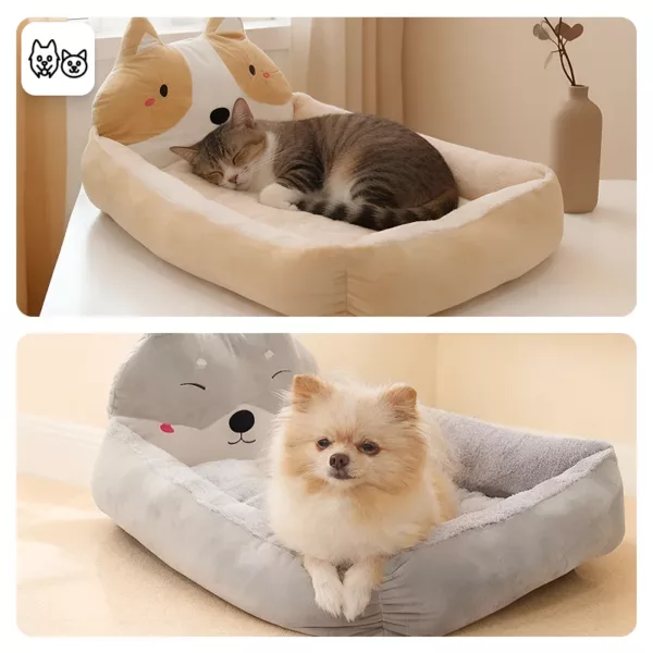 Roztomilý měkký uklidňující pelech pro psy, teplý polštář pro mazlíčky se zvýšenými okraji