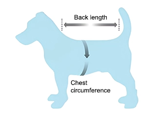 - 1. Změřte délku zad vašeho mazlíčka od základu krku po kořen ocasu.