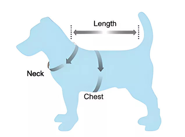- 1. Změřte délku zad vašeho mazlíčka od základny krku po kořen ocasu.