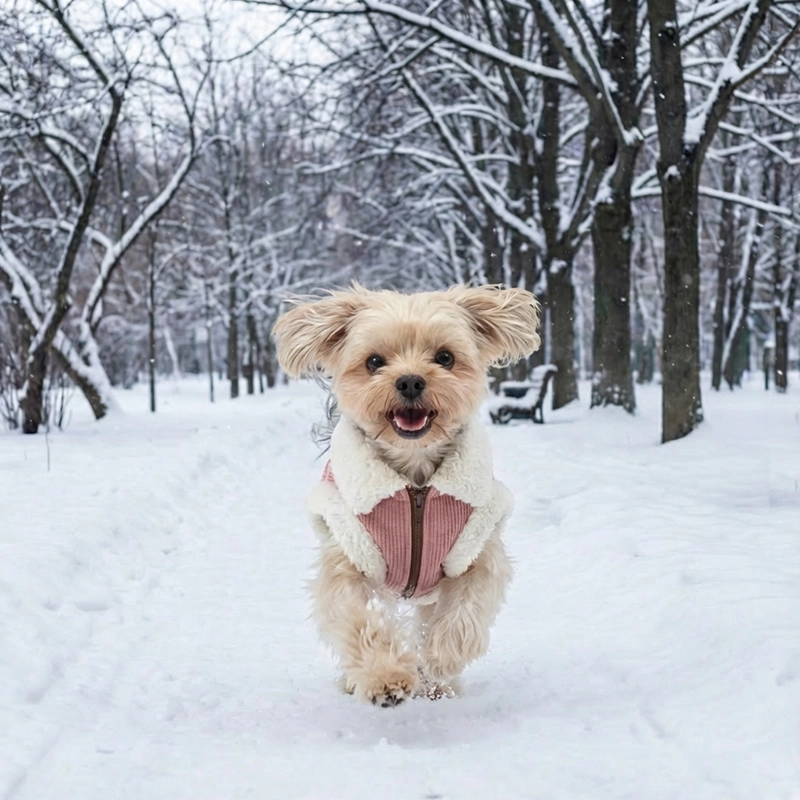 Můj malý pes je opravdu nadšený, když mu dávám jeho zimní kabátek! Je tak teplý a měkký. Zip je super snadný, i když se vrtí.