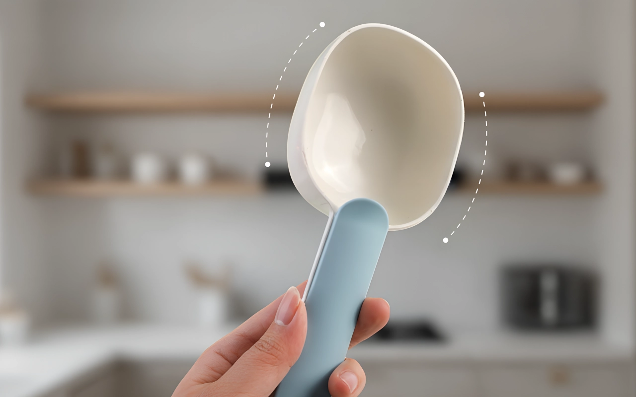 Užívejte si čisté krmení a vždy si udržujte ruce čisté. Zahnutý tvar usnadňuje nabírání a zabraňuje rozlití.