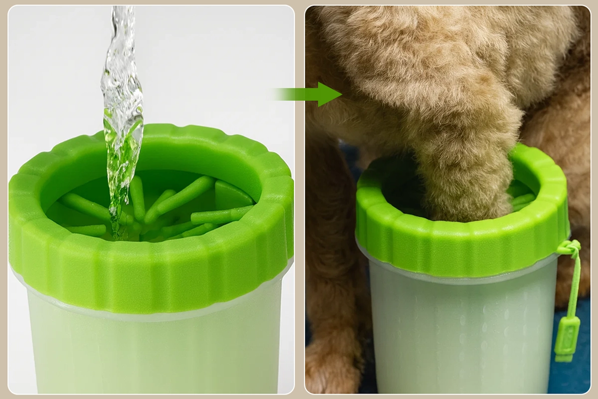 Jemné čištění rychle odstraní všechny stopy venkovní špíny. Chytré silikonové štětiny snadno vydrhnou bláto ze všech úhlů. Nezůstává žádný nepořádek, jen pocit čistoty pro chlupaté kamarády. Lehký design umožňuje mít kelímek vždy po ruce pro vaše pohodlí.