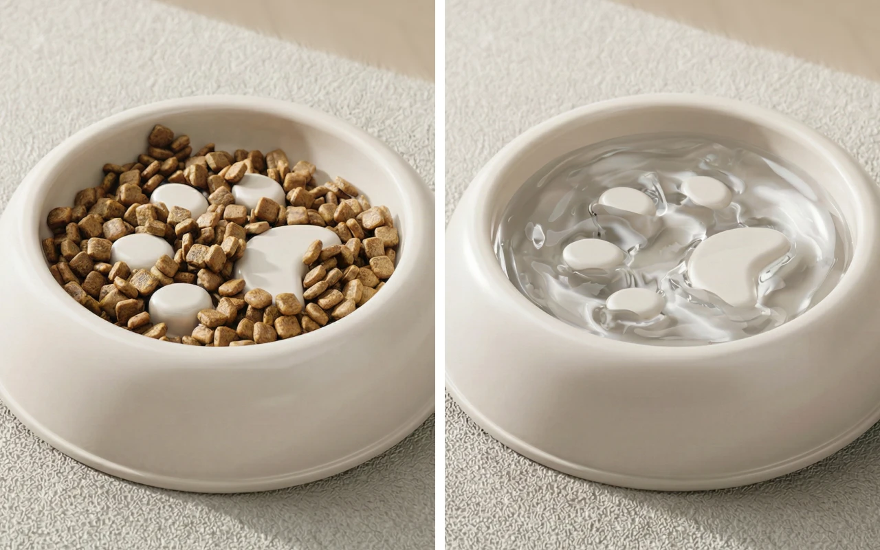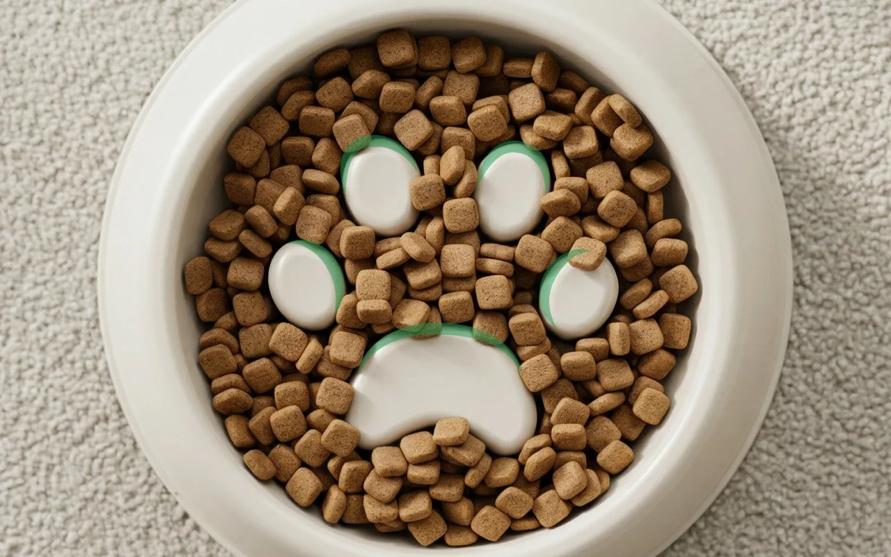 Pomalejší jedení pomáhá jemněji rozkládat potravu v bříšku vašeho mazlíčka. Už žádné nafouklé bříško nebo nepříjemné nadýmání po jídle.