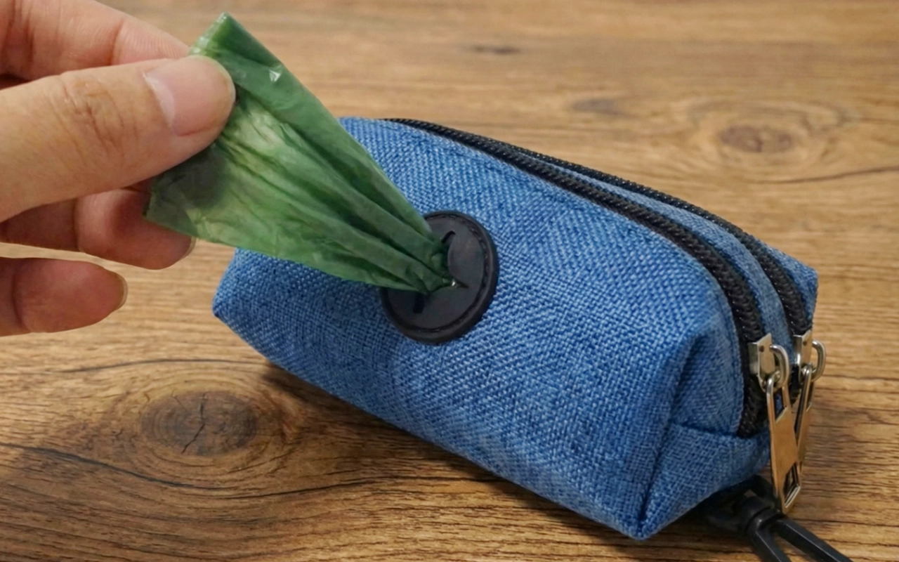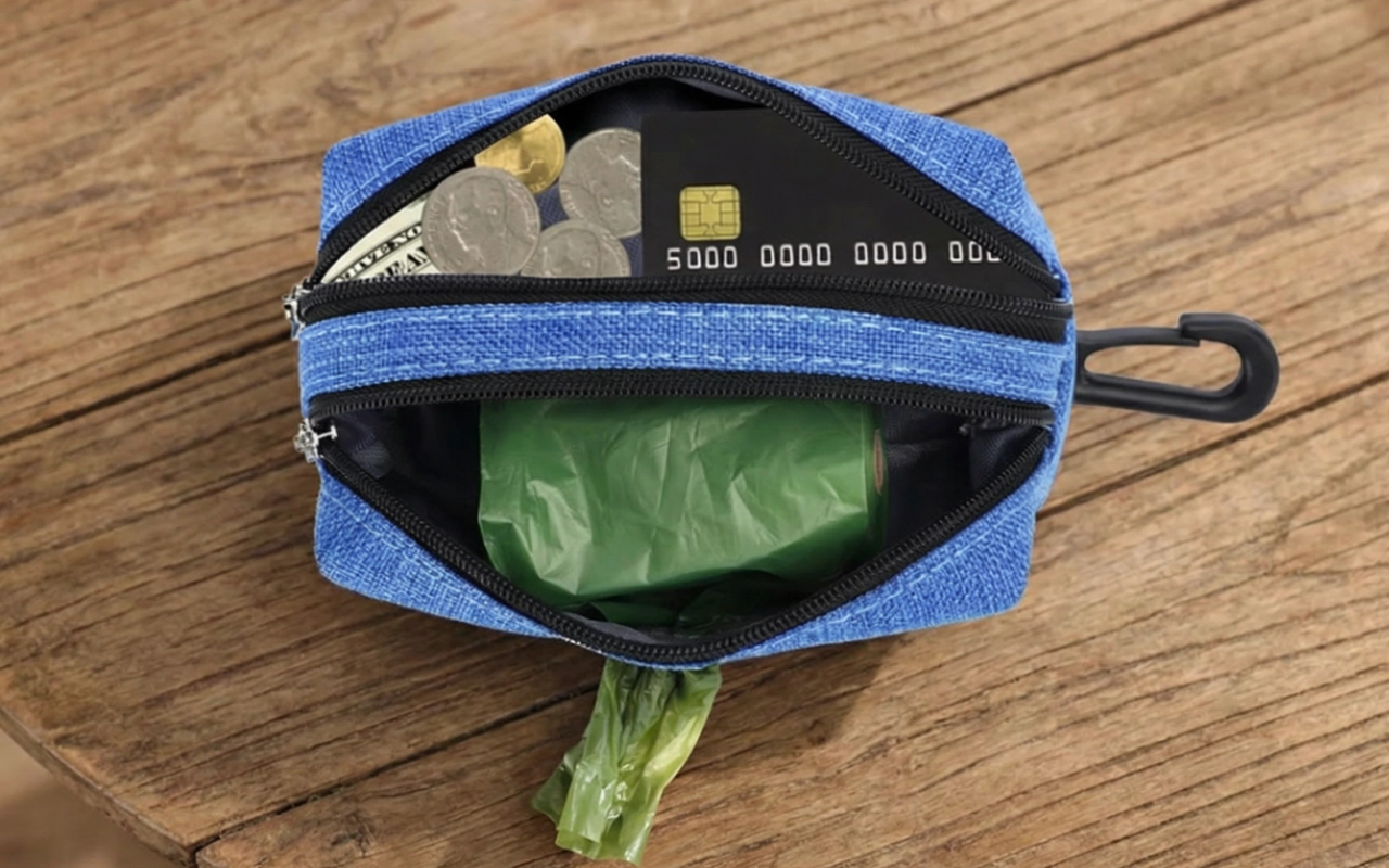 Tento zásobník pojme vše, co potřebuji na procházky. Vejdou se do něj klíče i pamlsky a sáčky zůstávají suché, i když prší. Nikdy jsem nic neupustila!