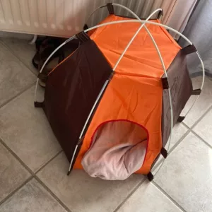 Toto je pěkný stan, ale přál bych si, aby byl k dispozici v různých velikostech, protože můj větší pes se také chce dostat dovnitř, ale nemůže!