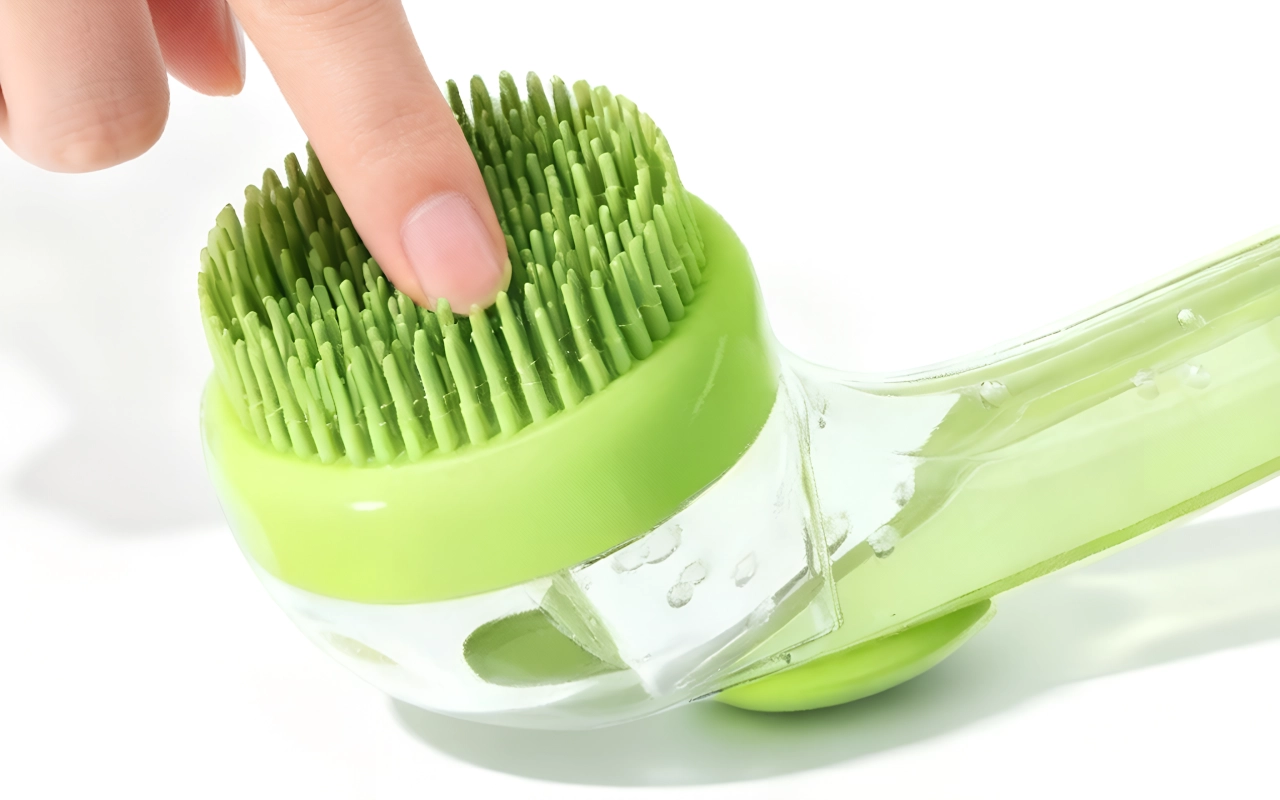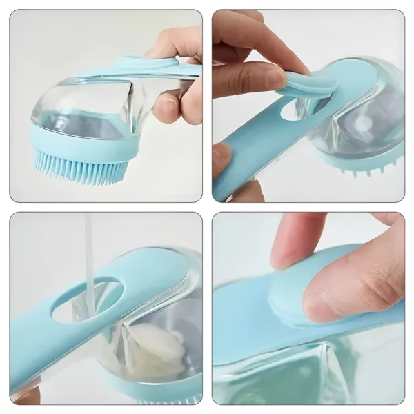 Silikonový kartáč na koupání psa se zásobníkem na šampon a dlouhou rukojetí