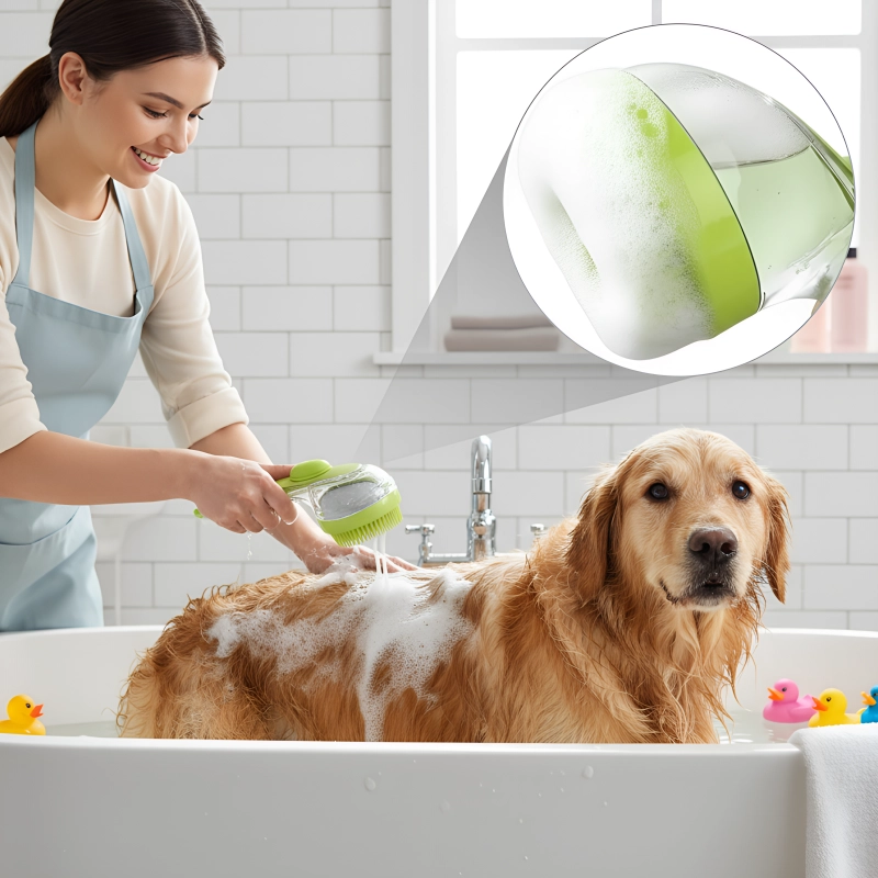 Tento kartáč na koupání je můj nový oblíbený při koupání psa. Dávkuje přesně tolik šamponu, kolik potřebuji, můj pejsek miluje masáž a není vůbec žádný nepořádek.