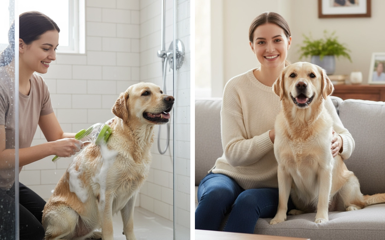 Koupání je díky tomu mnohem jednodušší a rychlejší. Ruce mám suché, dlouhá rukojeť mi umožní dosáhnout všude a můj pes je extra čistý.