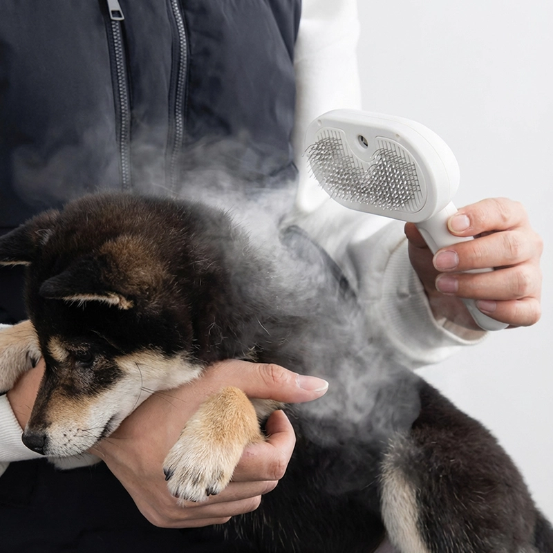 dog steam brush, dog steam grooming brush, dog cleaning brush, dog hair remover, pet deshedding tool