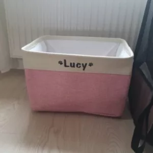 Uspořádejte věci svého psa v našem pevné a stylové úložné košíku. Pomůže vám uvolnit místo a udržet pořádek v domácnosti. S jménem vašeho mazlíčka na košíku bude opravdu jedinečný.