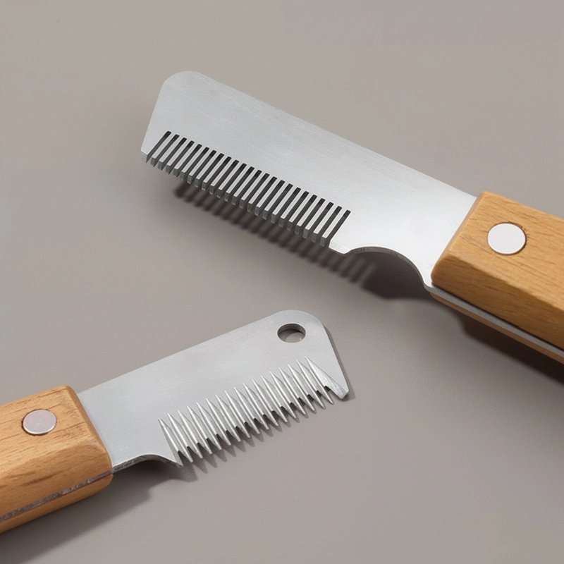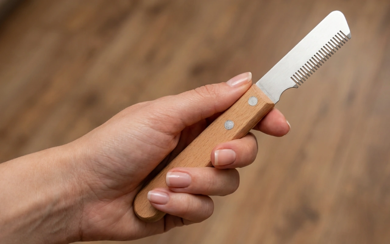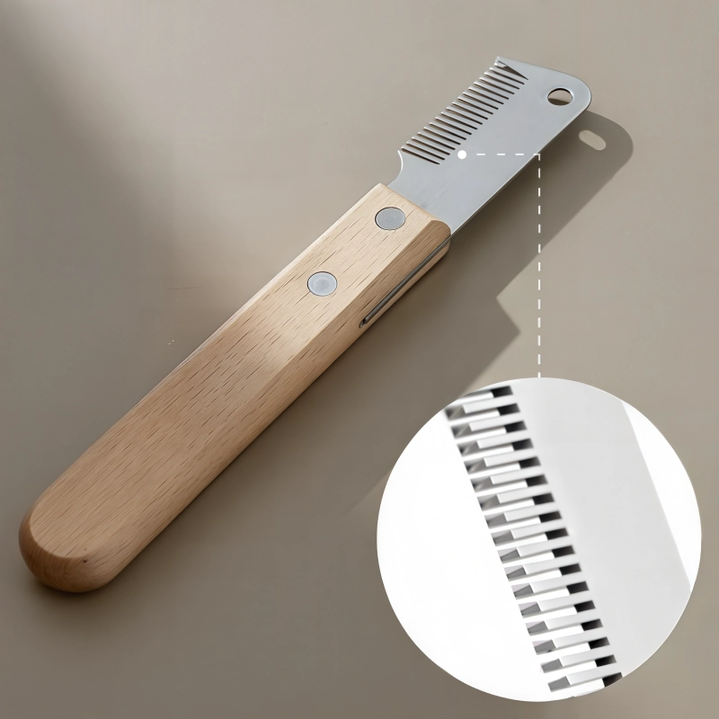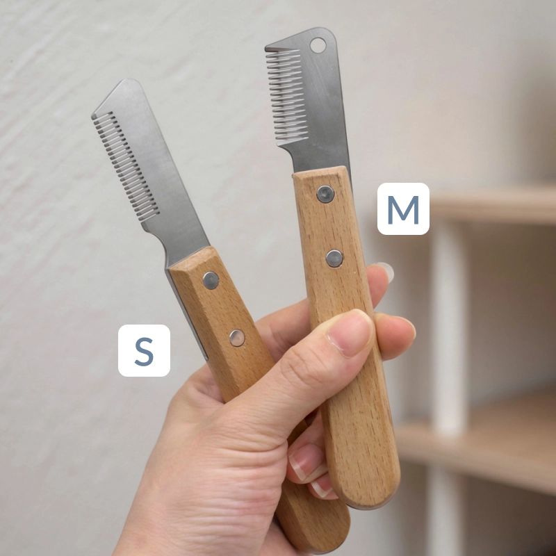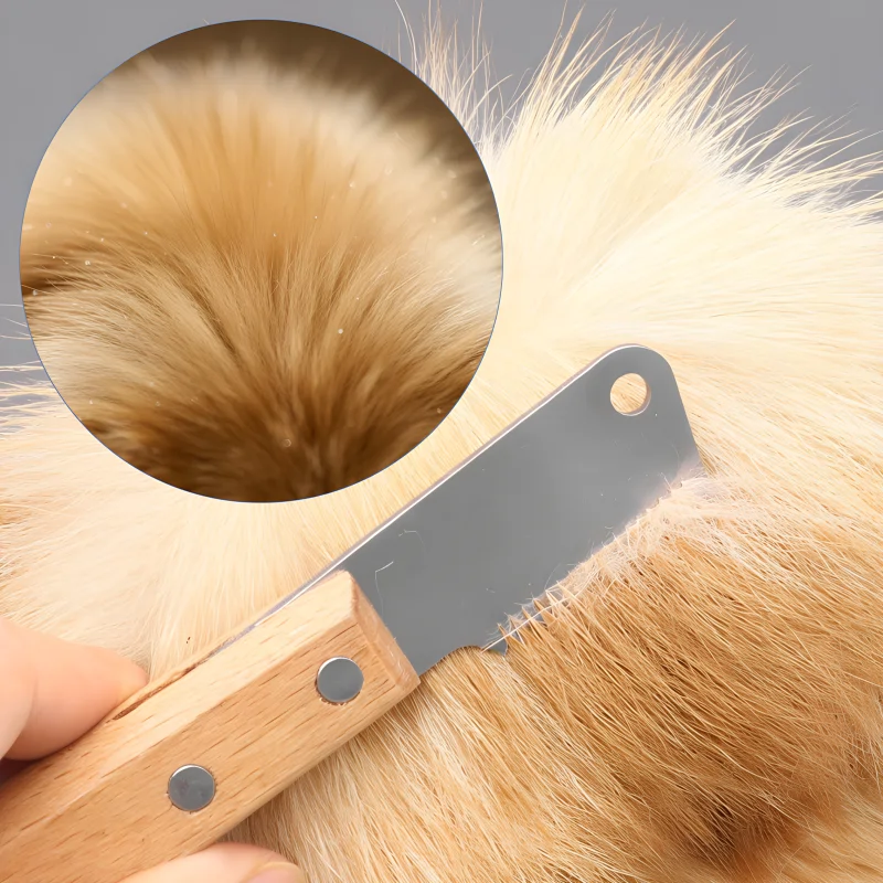 Vytrhávací nůž na srst pro psy s dřevěnou rukojetí