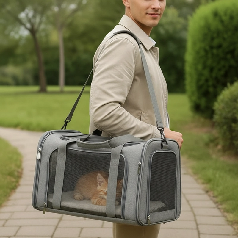 Použili jsme přepravník při návštěvě veterináře. Moje kotě zůstalo klidné a tiché. Dvojité zipy jsou opravdu praktické.