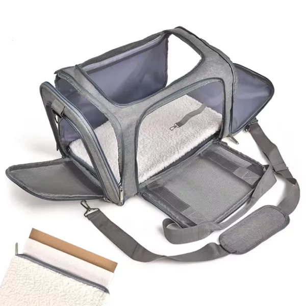 Odnímatelná fleecová podložka vytváří jemné lůžko pro klidný spánek. Síťované panely poskytují čerstvý vzduch, což pomáhá mazlíčkům při cestování relaxovat.