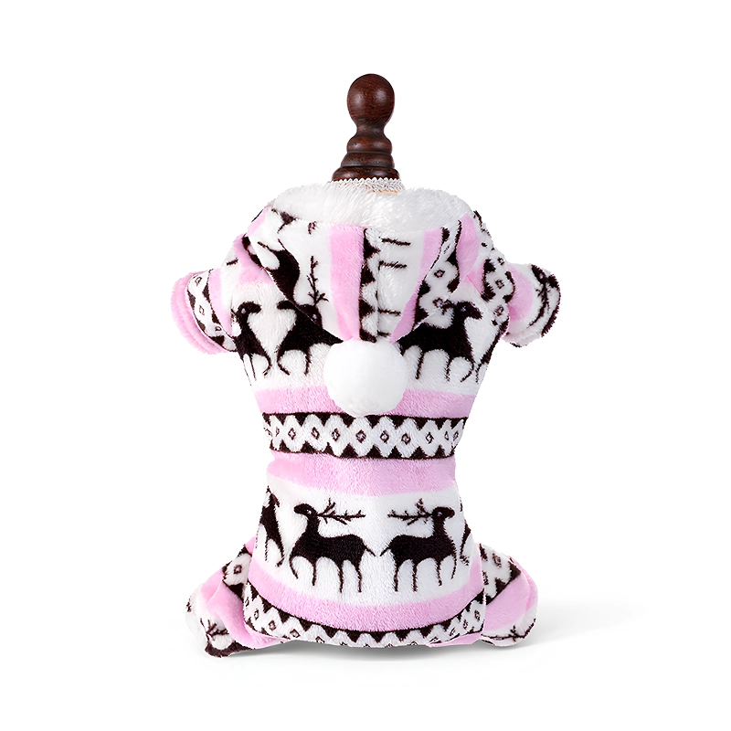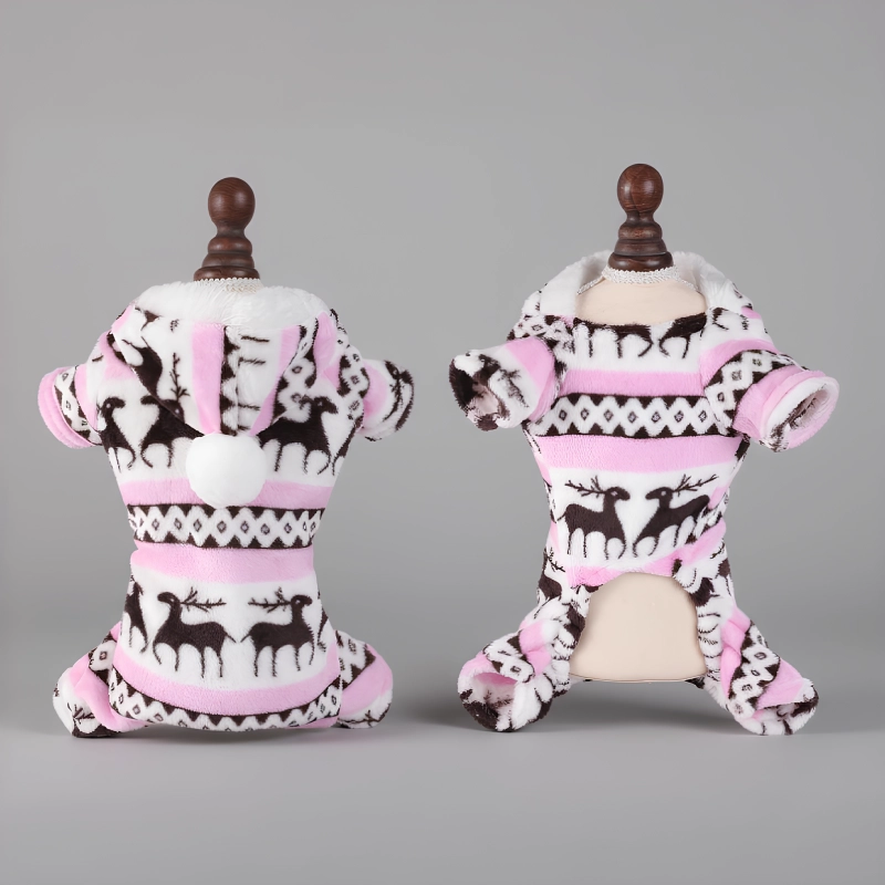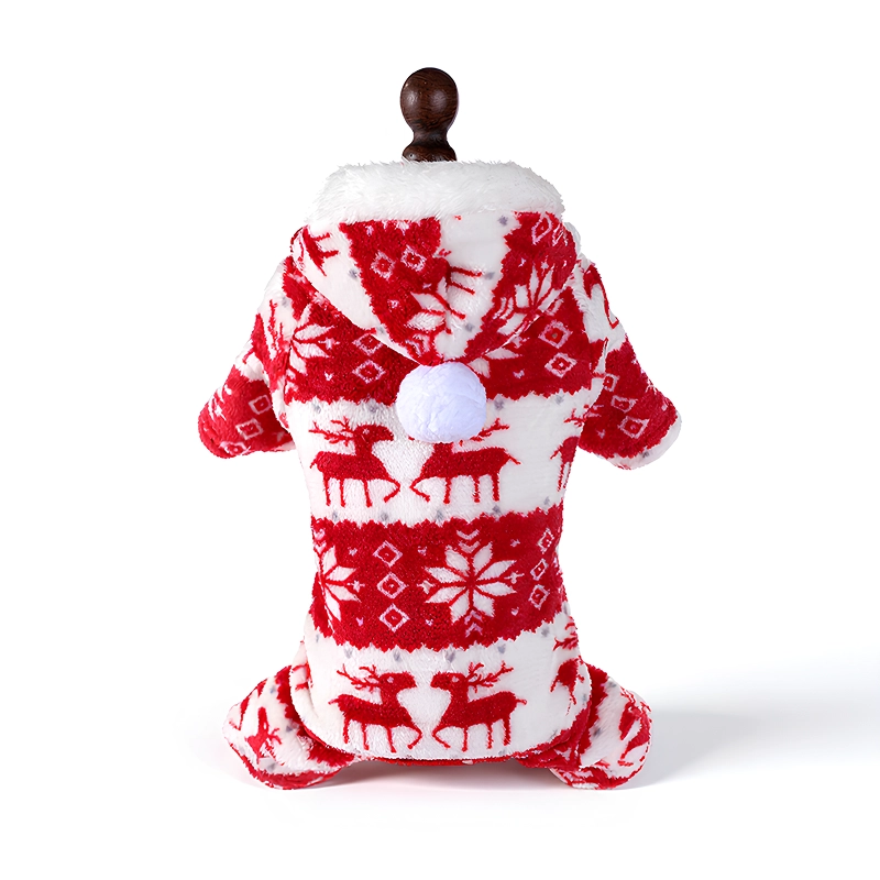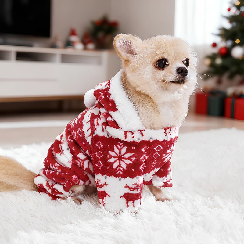 Teplé vánoční fleecové pyžamo pro psy s kapucí