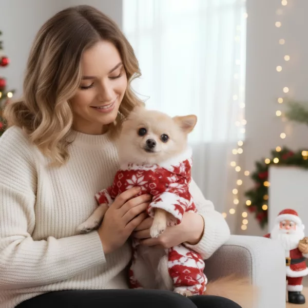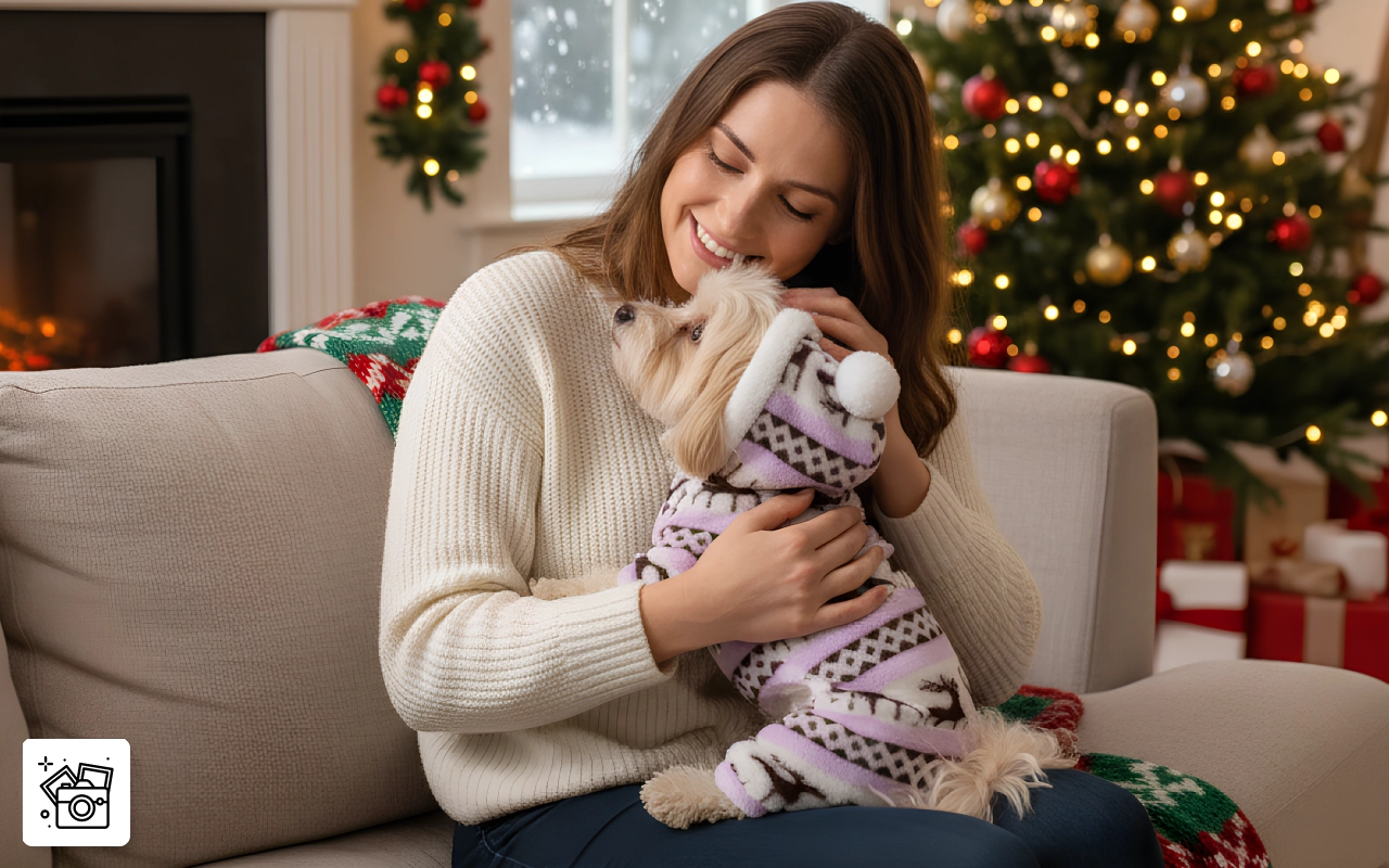Veselý vánoční design přináší radost do každého setkání. Zachyťte dokonalé sváteční fotografie s vaším mazlíčkem oblečeným pro zábavu.