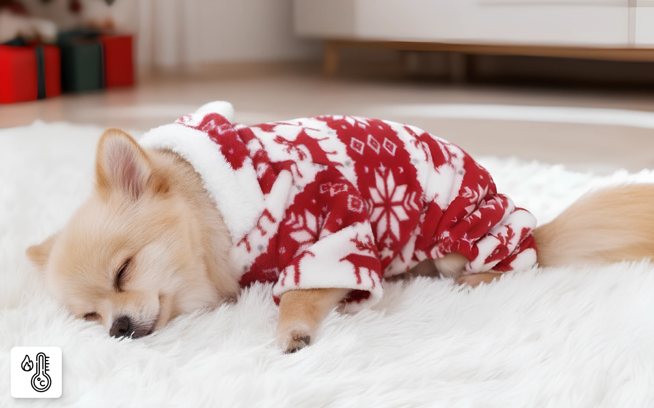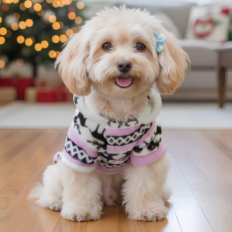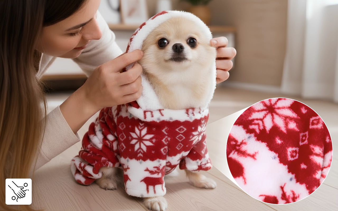 Můj malý pejsek byl celou noc v teple a vánoční design udělal naše rodinné fotky opravdu roztomilé! Skvěle mu sedí a snadno se pere.