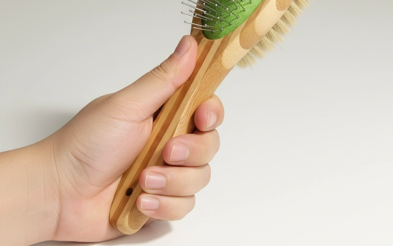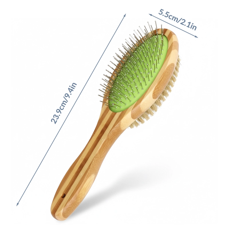 Mám rád, jak tento nástroj rychle rozčesává zacuchanou srst! Bambusová rukojeť je pevná a pohodlná i při delším používání. Můj pejsek vypadá upraveně a je spokojený.