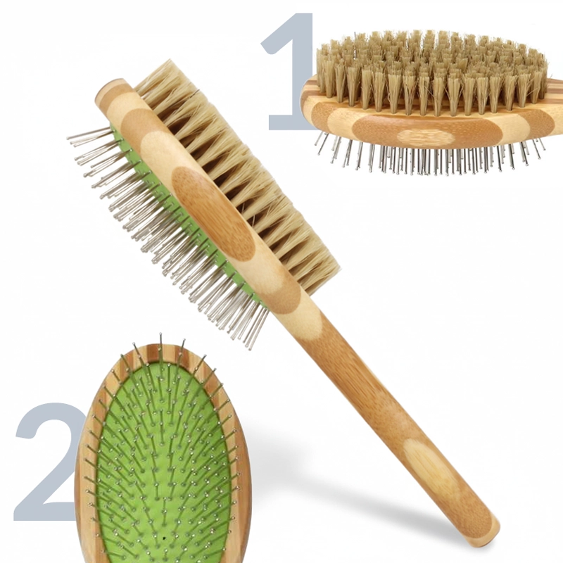 Snadno přepínejte mezi stranou s kartáčem a jehličkami pro kompletní péči. Každá strana je zaměřena na rozčesávání nebo uhlazení srsti pro lesklý vzhled.
