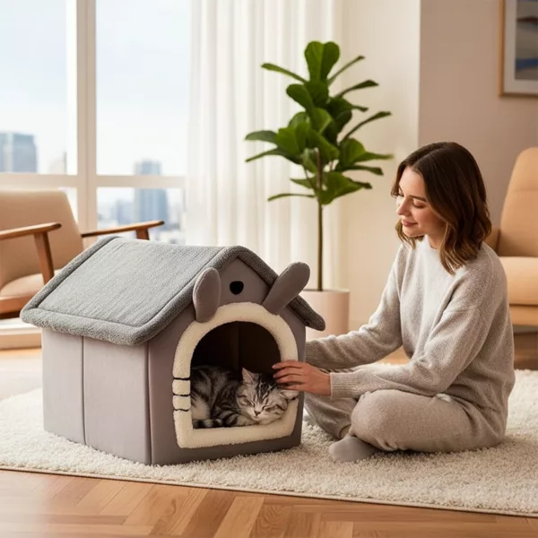 Skládací design je skvělý na uskladnění. Moje kočka se uvnitř cítí bezpečněji a spodek vůbec neklouže, ani když do pelíšku skočí rychle.