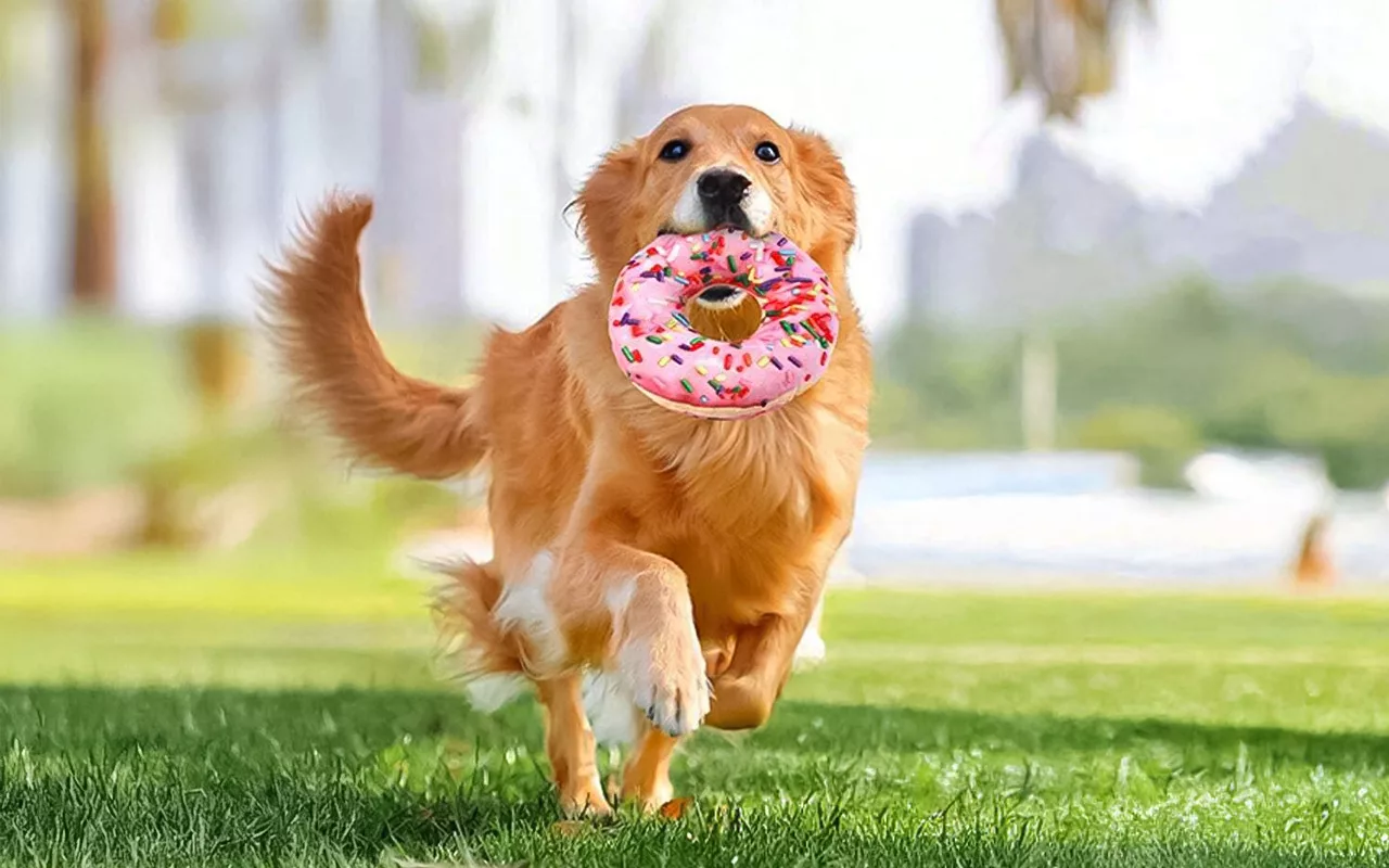 Tato roztomilá hračka ve tvaru jídla udělala Daisy opravdu šťastnou. Pořád ji honí a dokonce ji schovává do pelíšku na pozdější muchlání.