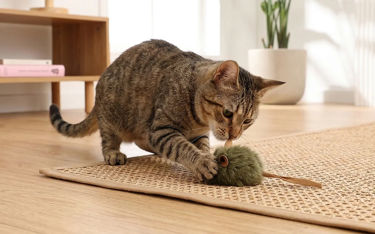 Moje dvě bytové kočky se o tuto pískací myš přetahují. Honí ji po obýváku a po jídle ji koušou, což se zdá být skvělé pro jejich zuby.
