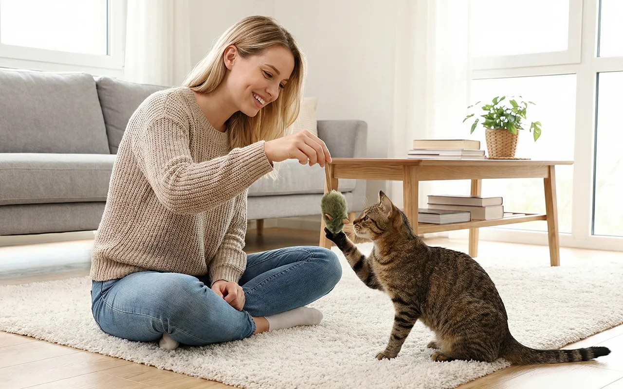 Dobrá pískací hračka, udržuje mou kočku aktivní a spokojenou.