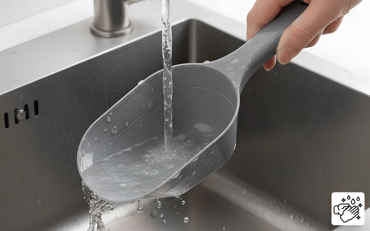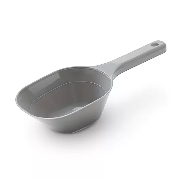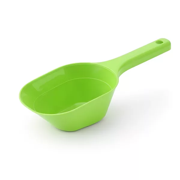 Pohodlné držadlo je super, hlavně při rychlém plnění krmiva. Naběračka je pevná a s menším množstvím zbytků je podlaha čistší. Skvělý produkt!