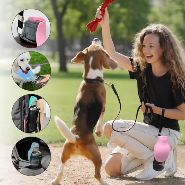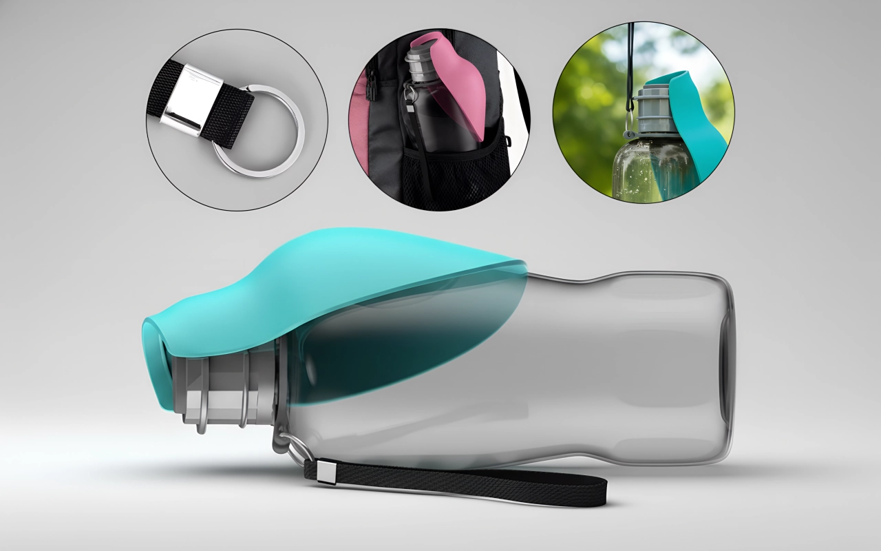 Lehká konstrukce a pevné poutko rychle uchytíte k tašce nebo opasku. Psi i štěňata zůstávají hydratovaní kdekoliv na cestách.