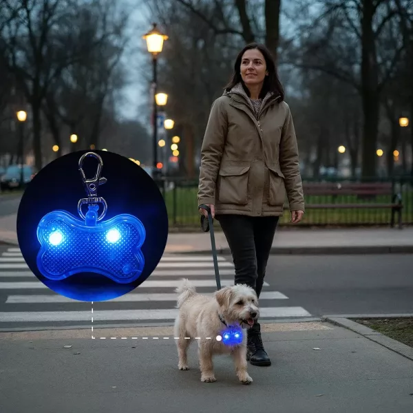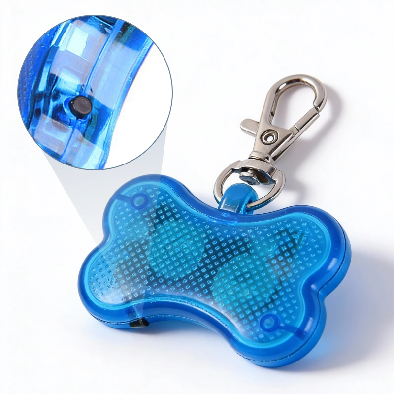 Tento kostěný přívěsek je skvělý na naše večerní procházky. Můj pes je dobře viditelný a změna barvy světla je velmi snadná. Miluji klip – nikdy nespadne!