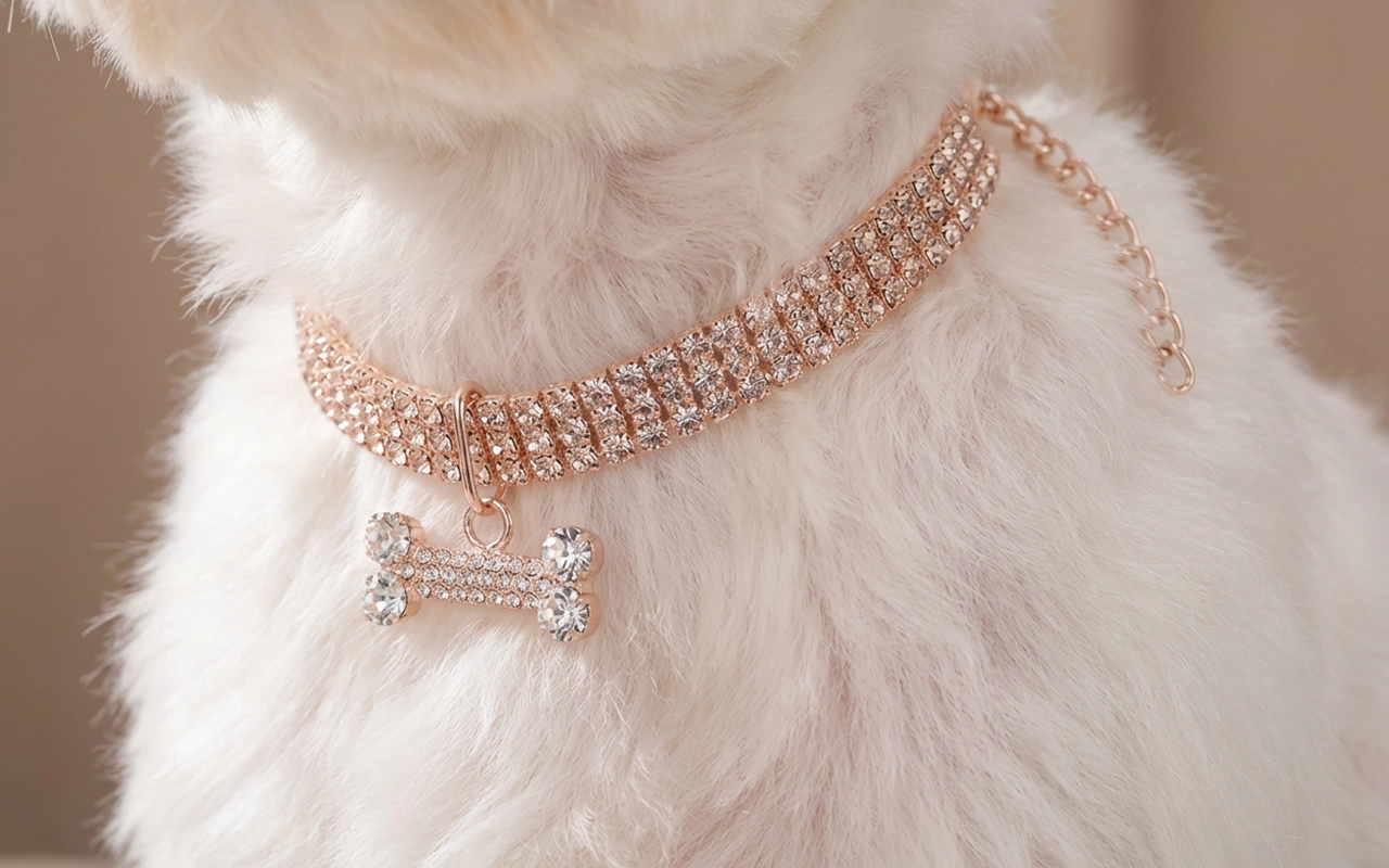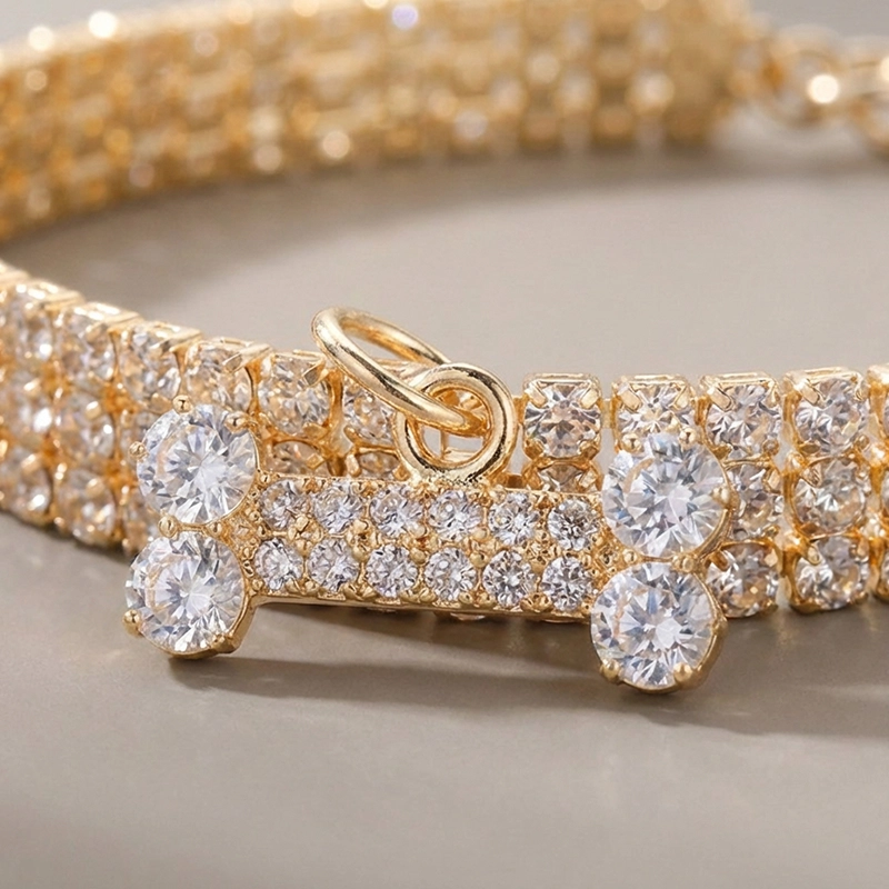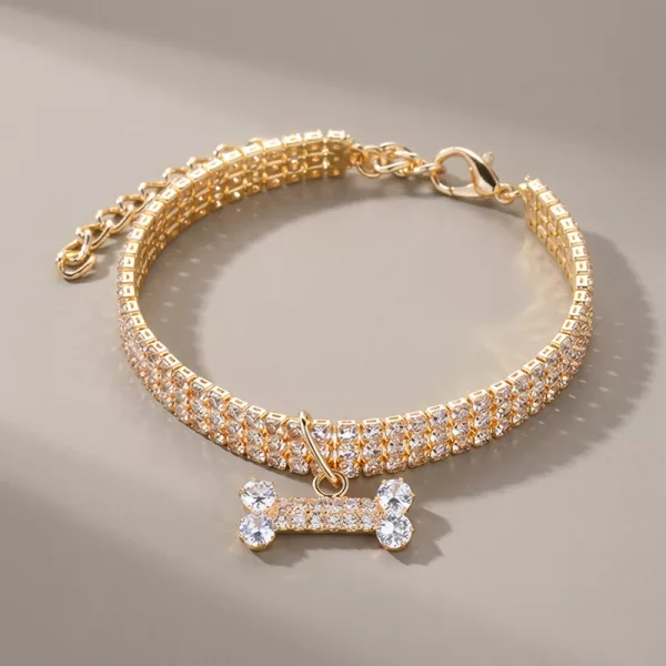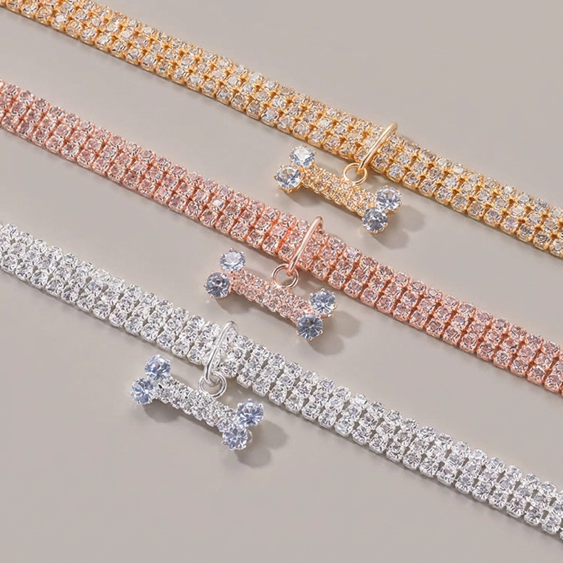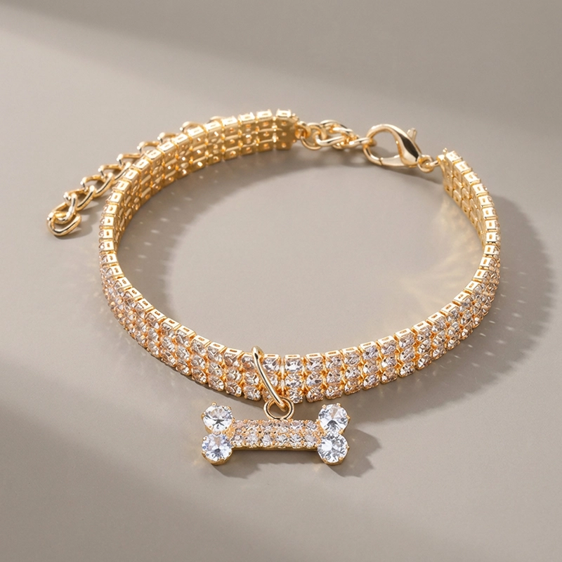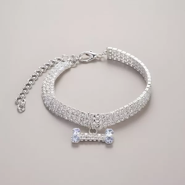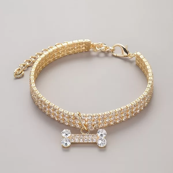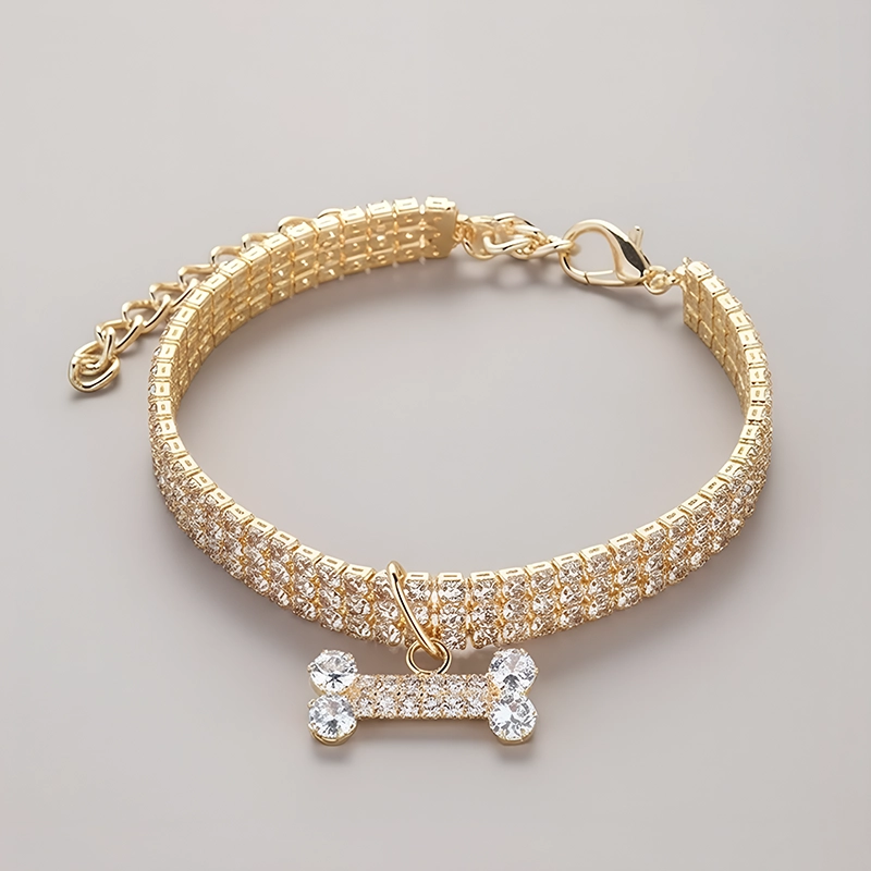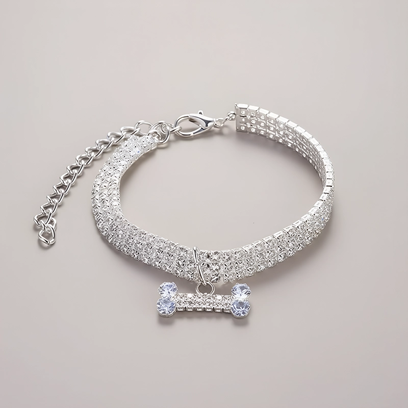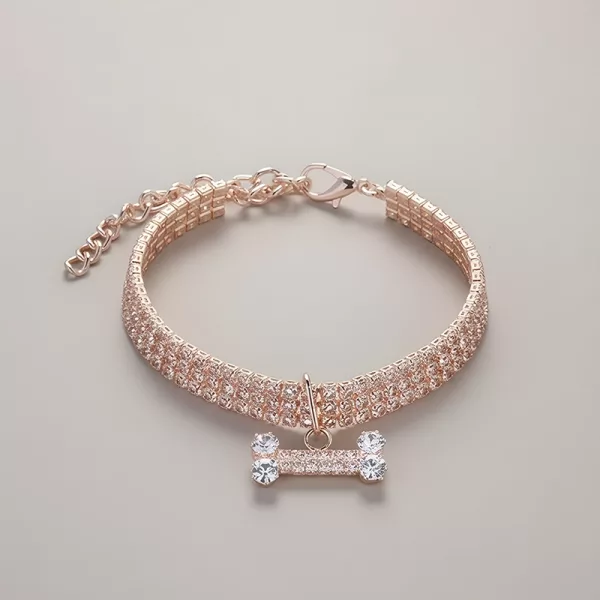 Nádherný psí obojek s kamínky a přívěskem ve tvaru kosti
