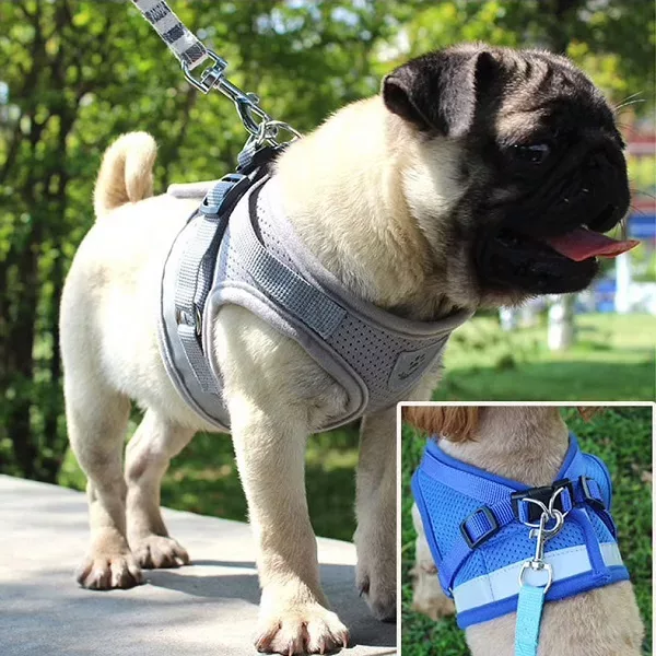 Síťovaná vesta s postrojem a vodítkem pro štěňata, malé a střední psy