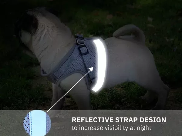 ✔️ REFLEXNÍ — Díky reflexním páskám je tento postroj viditelný za nízké viditelnosti. Zajistěte bezpečnost svého psa při nočních procházkách.